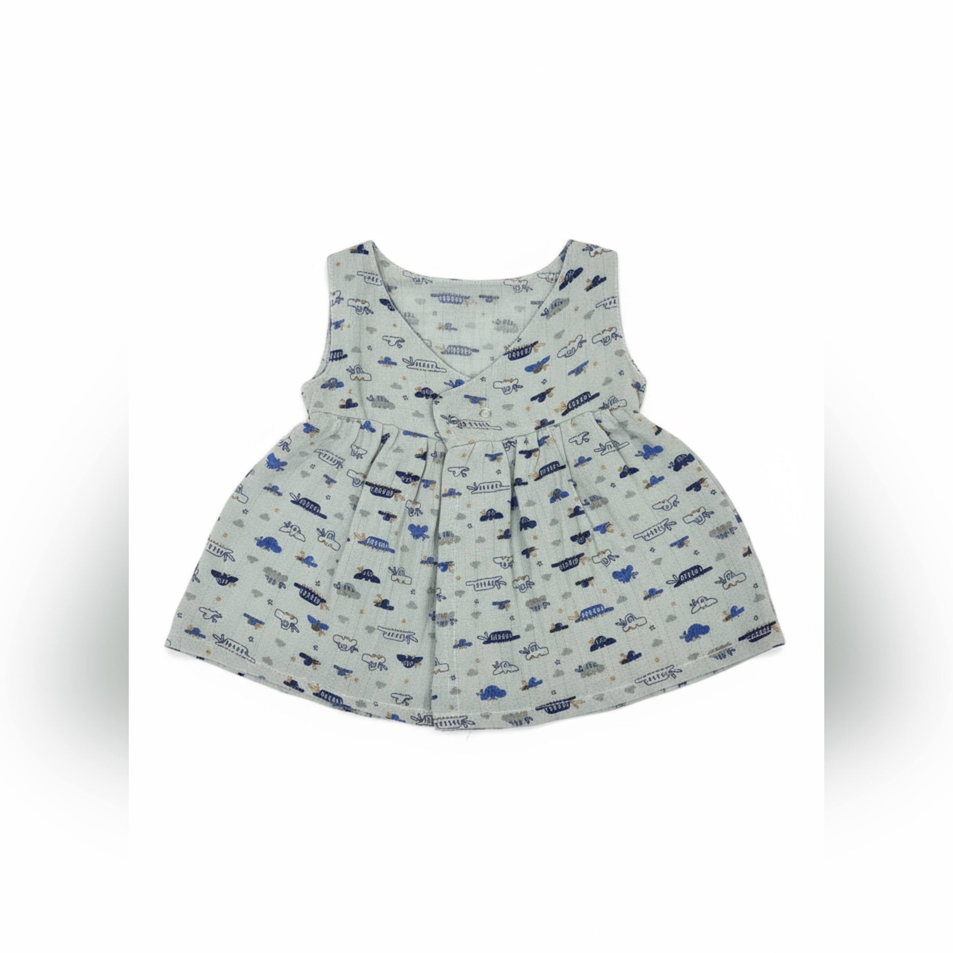 Keep your little one comfy and cute in this blue vehicle print cotton dress. Designed with a sleeveless style and lightweight fabric, this dress is perfect for everyday wear or warm-weather outings. The fun car, airplane, and boat print adds a playful touch, while the soft cotton ensures breathability and comfort for delicate baby skin.
